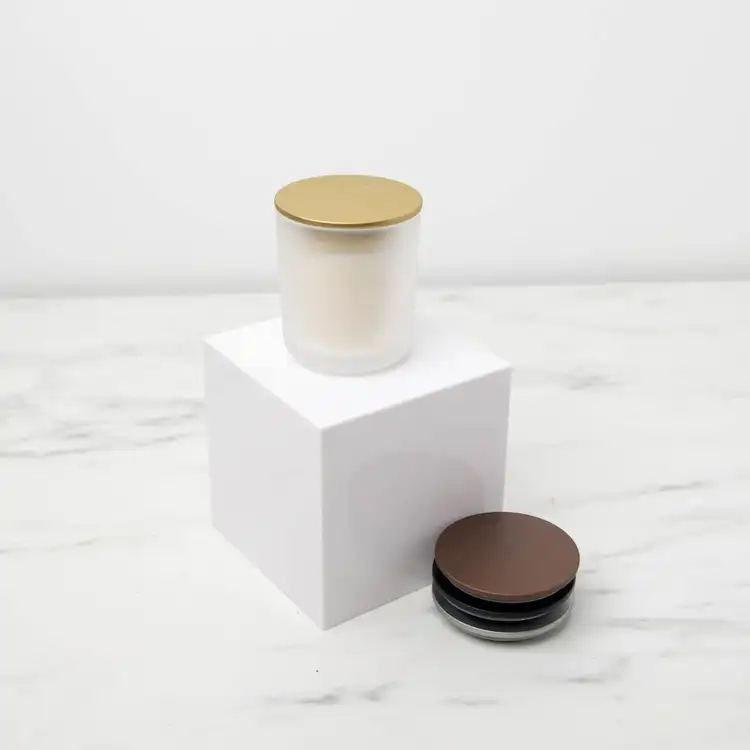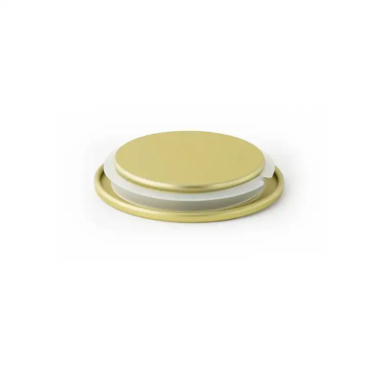 Find the ideal finishing touch for your candles with the 2.5” Matte Gold Metal Flat Lid. Made to complement the Mini Sonoma Tumbler Jars, the low profile metal lid with a matte black finish provides understated elegance. An inner silicone fitment provides a secure seal. Also available in silver, black, and bronze.